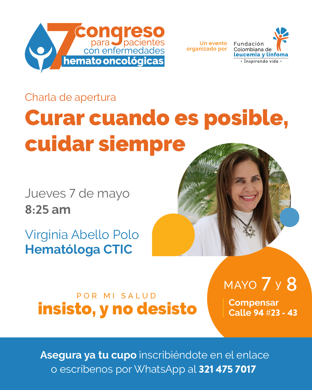 La Fundación Colombiana de Leucemia y Linfoma llevará a cabo el 7° Congreso para pacientes con enfermedades hemato oncológicas, los días 7 y 8 de mayo en modalidad presencial, en el Centro de Convenciones Compensar calle 94, de la ciudad de Bogotá.